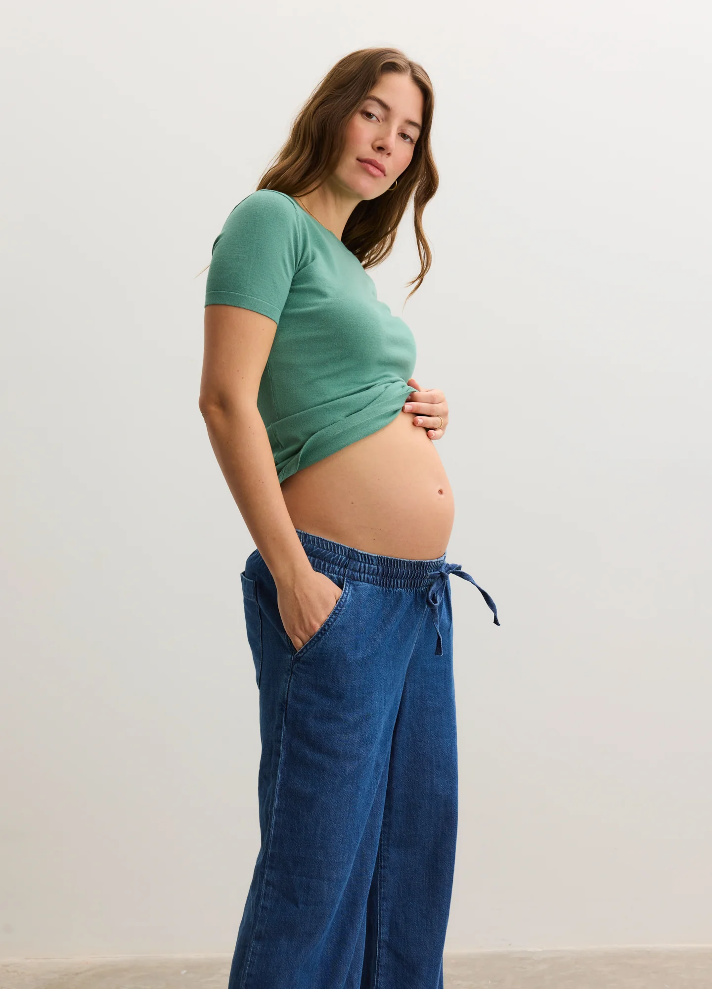- Stretchy, grow-with-you bump-friendly fit